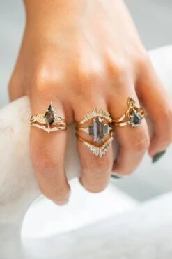 1.22 Carat Black Kite Diamond Engagement Ring, Bezel Avaline Setting, 14K Yellow Gold