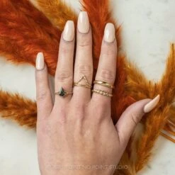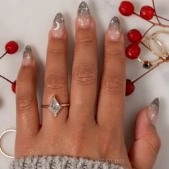 1.31 Carat Salt And Pepper Hexagon Diamond Engagement Ring, Eliza Setting, 14K Yellow Gold