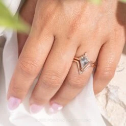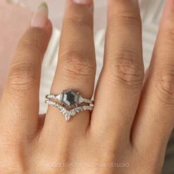 1.37 Carat Salt And Pepper Hexagon Diamond Engagement Ring, Ombre Sirena Setting, Platinum