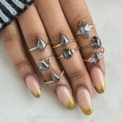 1.52 Carat Salt And Pepper Hexagon Diamond Engagement Ring, Charlotte Setting, 14k White Gold