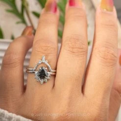 1.57 Carat Salt And Pepper Pear Diamond Engagement Ring, Ombre Jules Setting, 14K Rose Gold