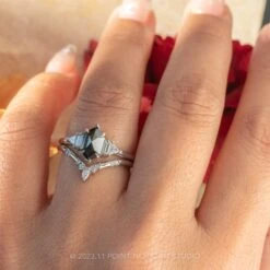 1.53 Carat Salt And Pepper Kite Diamond Engagement Ring, Bezel Jane Setting, 14k Rose Gold