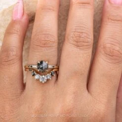 1.57 Carat Black Speckled Hexagon Diamond Engagement Ring, Ombre Jules Setting, 14k Yellow Gold