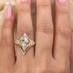 1.57 Carat Lozenge Moissanite And Diamond Engagement Ring, Thistle Setting, 14k Yellow Gold