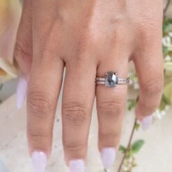 1.58 Carat Black Speckled Oval Diamond Engagement Ring, Ombre Jules Setting, 14K Rose Gold