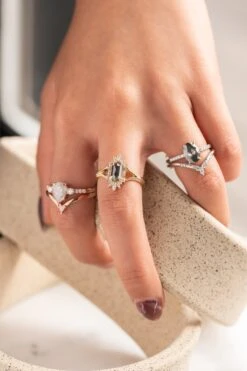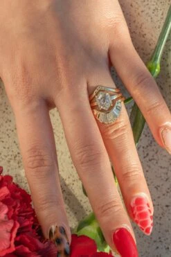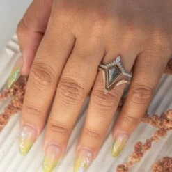 1.53 Carat Salt And Pepper Kite Diamond Engagement Ring, Bezel Avaline Setting, 14k Rose Gold