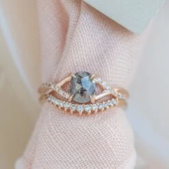 1.67 Carat Black Speckled Kite Diamond Engagement Ring, Bezel Jane Setting, 14K Rose Gold