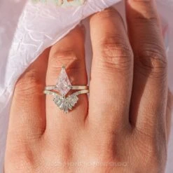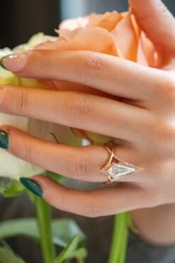 2.01 Carat Kite Moissanite And Diamond Engagement Ring, Twisted Arwen Setting, 14k Rose Gold