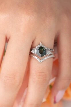1.29 Carat Canadian Salt And Pepper Kite Diamond Engagement Ring, Lenora Setting, Platinum