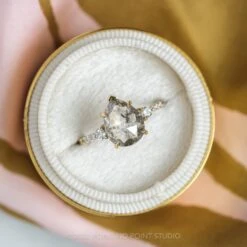 3.40 Carat Black Speckled Hexagon Diamond Engagement Ring, Ombre Sirena Setting, 14K Yellow Gold