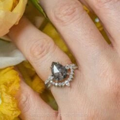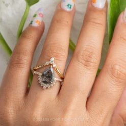 3.64 Carat Salt And Pepper Pear Diamond Engagement Ring, Avaline Setting, 14K Yellow Gold