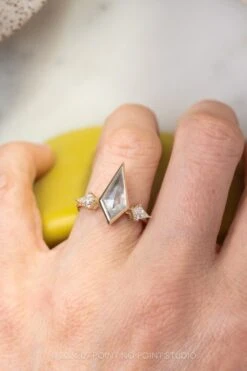 3.18 Carat Black Speckled Kite Diamond Engagement Ring, Charlize Setting, 14k Yellow Gold