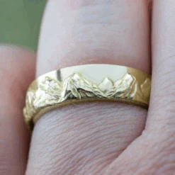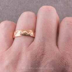 6mm Comfort Fit, 14k Yellow Gold Mens Wedding Band, Wood Grain Matte