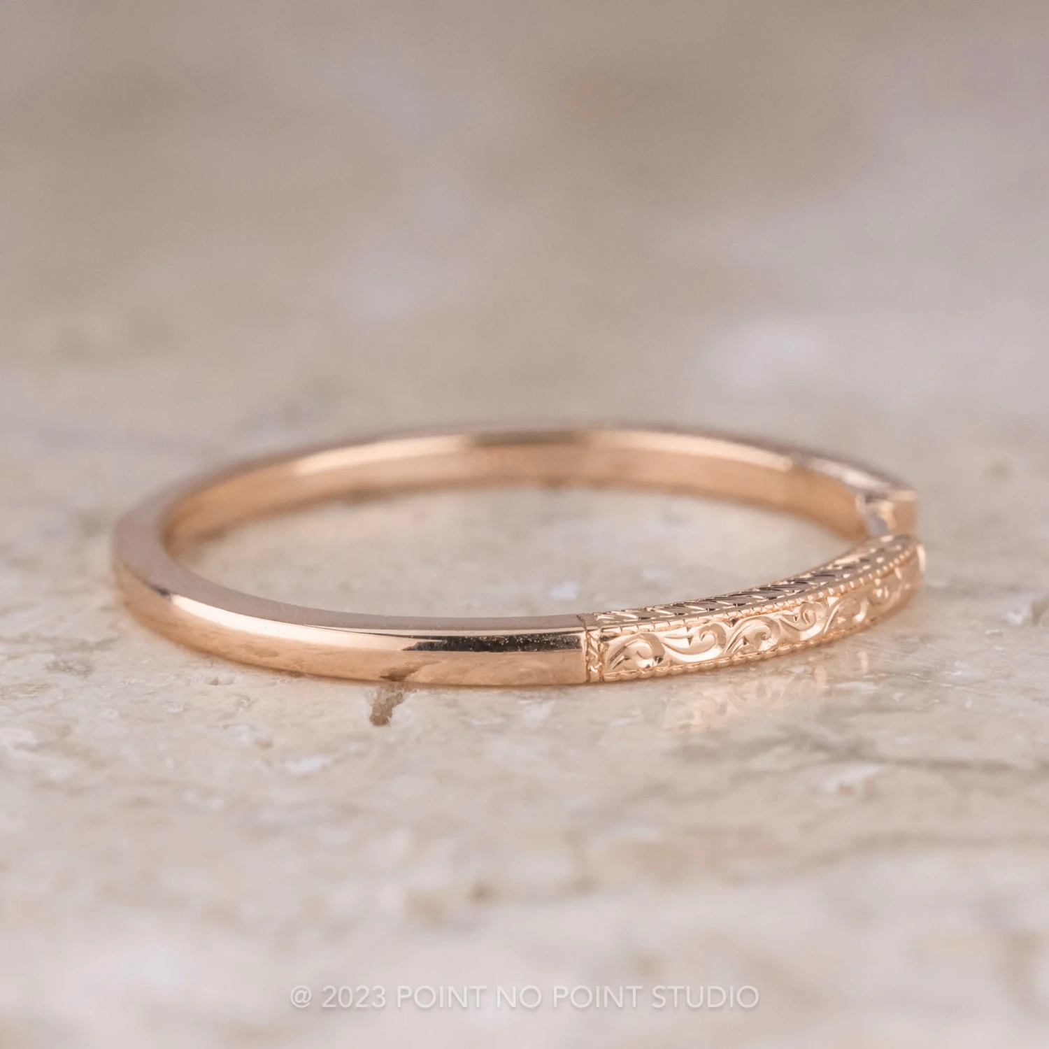 Our jeweler hand engraved traditional scroll on the top of the band with a wheat pattern on the sides of the band.