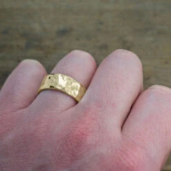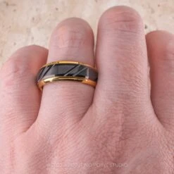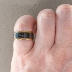 8mm Men’s Black Titanium Ring With 18K Yellow Gold Plated Edges, Hammered Finish
