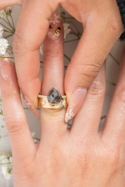 2 Diamond Star Set Wedding Band, 5mm Ellipse Setting, 14k Yellow Gold