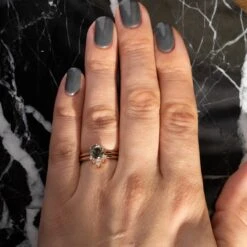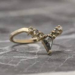 Salt And Pepper Pear And Round Diamond Wedding Ring, Cassiopeia Setting, 14K Yellow Gold