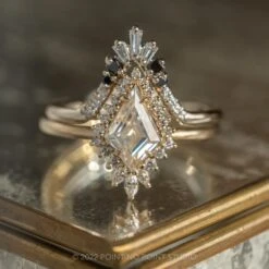Black Baguette Diamond Wedding Band, Wren Setting, 14k White Gold